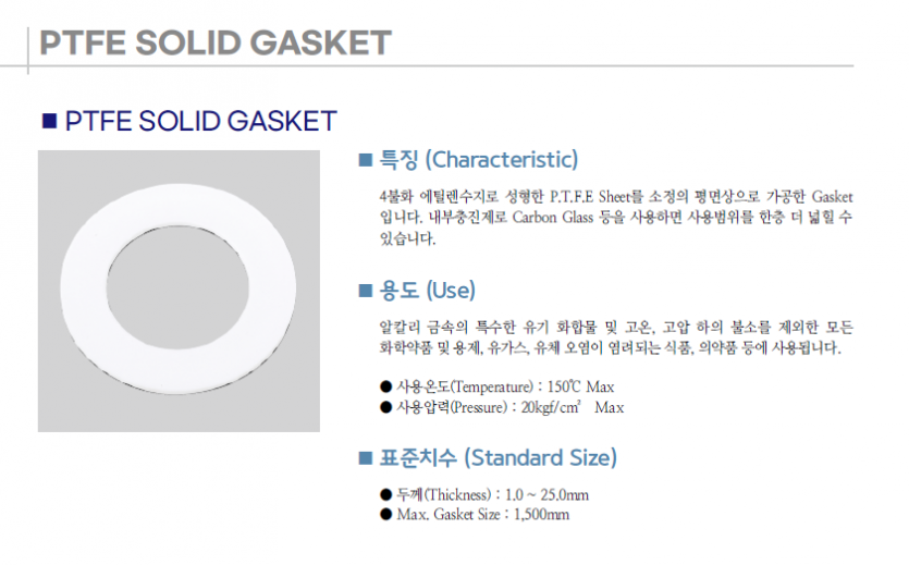 PTFE SOLID GASKET 치수 문의 건